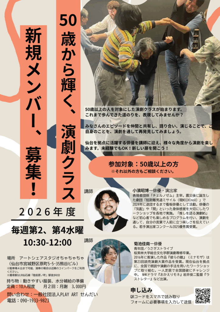 PLAY ART せんだいが主催する50歳以上の方を対象とした演劇クラスがスタートします。